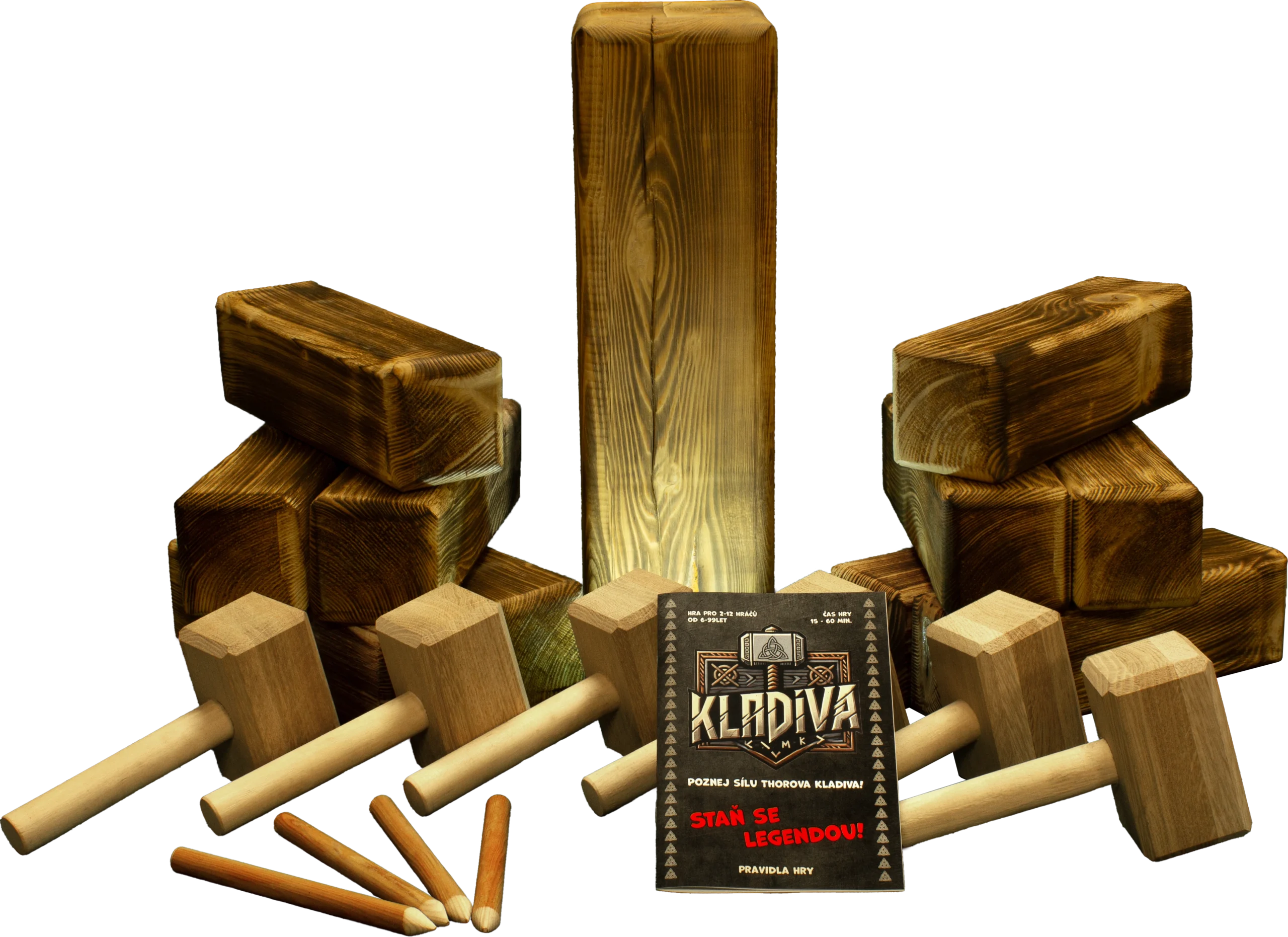 Kladiva je venkovní společenská hra, která spojuje dovednost, strategii a zábavu v jednom. Ve hře se hází dřevěným kladivem na soupeřovy figury a cílem je srazit je všechny, včetně krále uprostřed hřiště. Čeká vás napětí, smích i soutěžení pod širým nebem. Hru si užijí děti i dospělí, takže je ideální na zahradu, louku, k vodě, na chatu nebo třeba firemní teambuilding. Užijte si pohyb v přírodě a zažijte pocit vikingských bojovníků, kteří poměřují síly v hodu legendárním kladivem Mjölnirem.